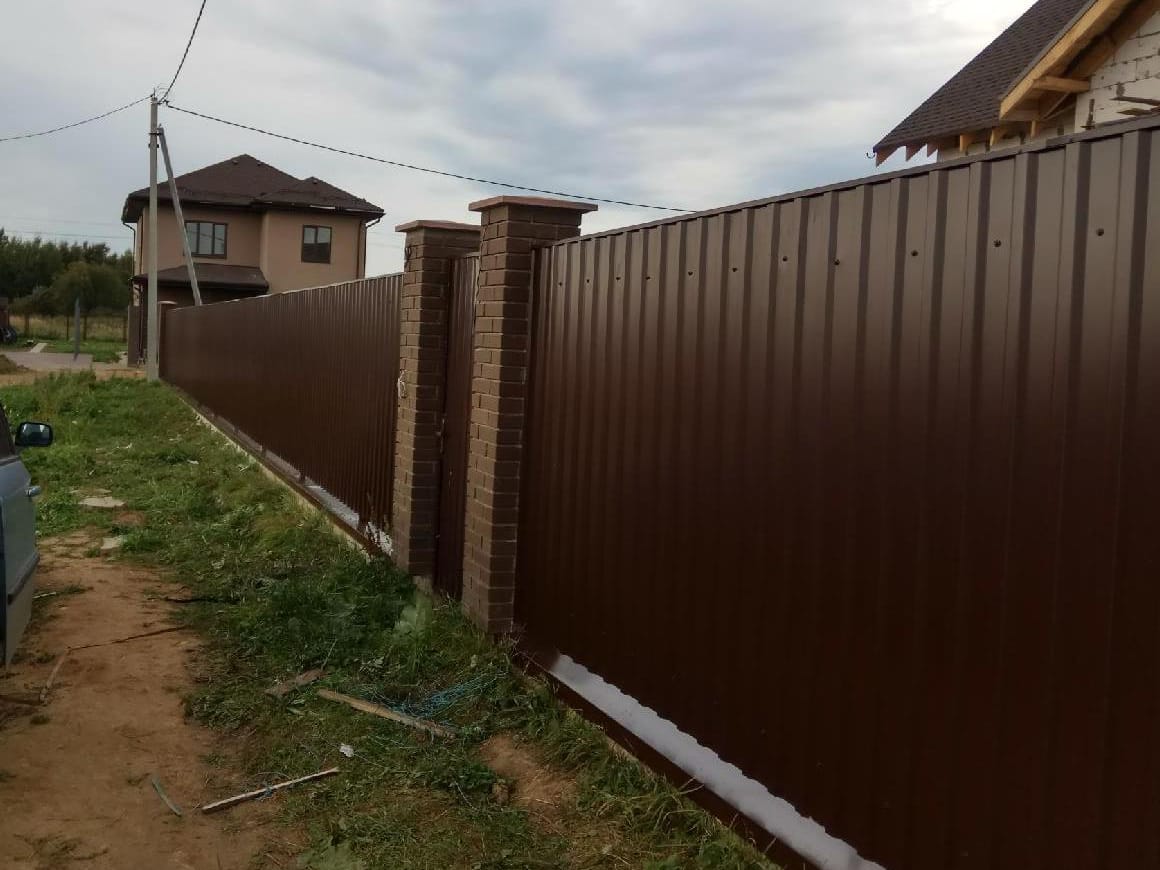 Недавно воспользовался услугами компании, и в целом доволен полученным результатом. Мне нужно было срочно поставить вокруг частного земельного участка забор-профнастил на фундаменте с кирпичными столбами. Могу вас уверить, что даже не ожидал, что работы по установке будут произведены настолько быстро и качественно.