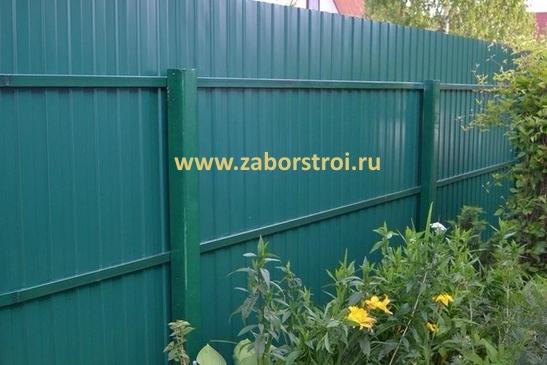 Цены на забор из профнастила с20 на металлических столбах 60x60x20мм. и двух лагах 40x20x1.5мм.