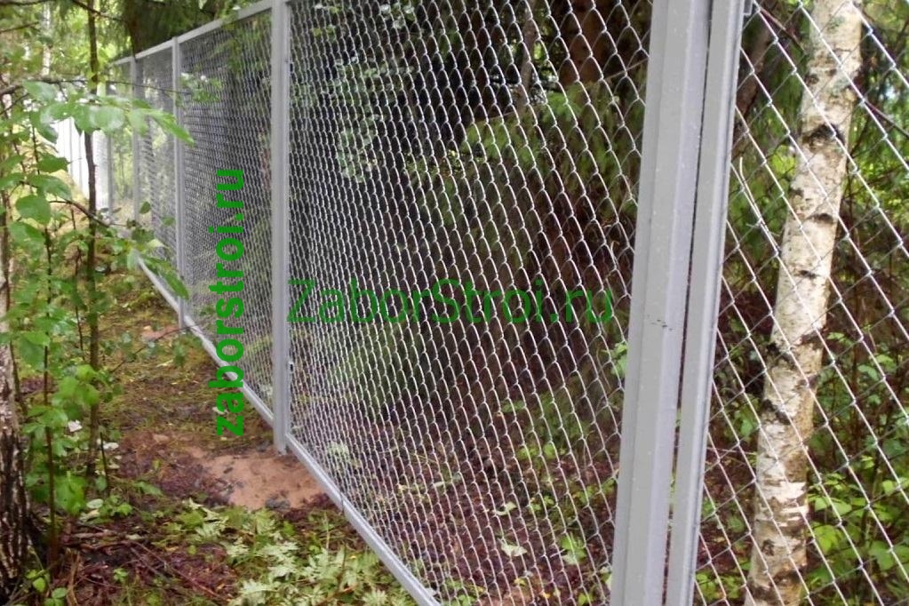 Забор из сетки рабицы в натяг